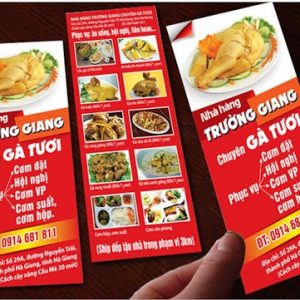 In tờ rơi nhà hàng giúp thu hút thực khách đến với nhà hàng, quán ăn thông qua những hình ảnh bắt mắt, những khuyễn mại và ưu đãi đặc biệt khi đến với nhà hàng. Những tờ rơi này được thiết kế với những hình ảnh rất bắt mắt, kích thích những khách hàng đam mê ẩm thực tìm đến và thưởng thức.